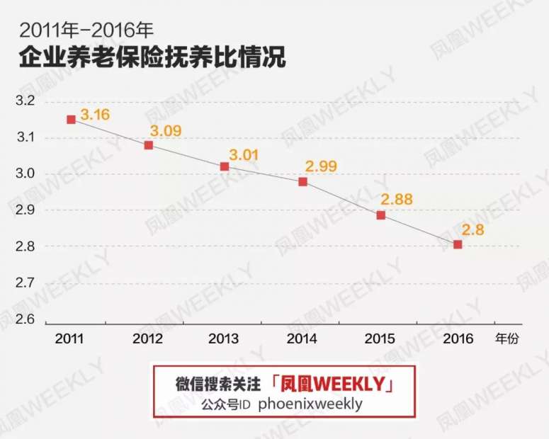 而抚养比的数据,也不乐观。所谓抚养比,即平均多少年轻人抚养1个老年人。