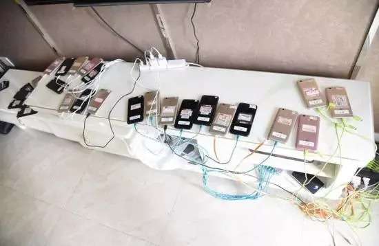 “23”平台犯罪嫌疑人被抓获时,警方在其办公场地搜查出多部手机。