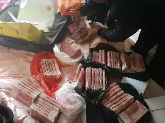 “23”平台犯罪嫌疑人被抓获时,警方在其办公场地搜查出来的现金。