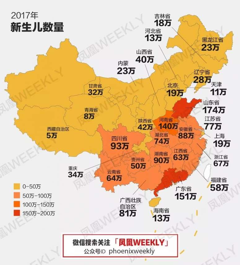 图为2017年新生儿数量数据来源:各地2017年统计公报