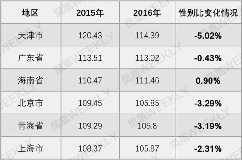 而对比2015年,性别数据异常高的6地,有5个都呈现了下降趋势。
