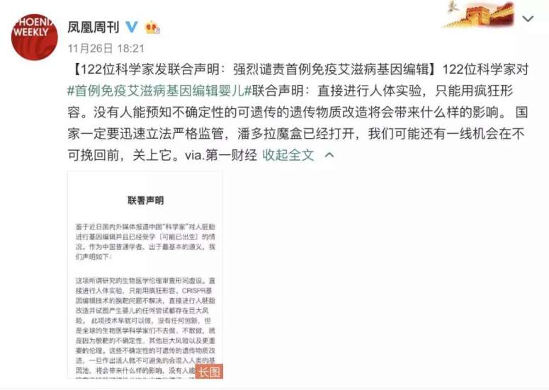讽刺的是,当我们以人道为出发点,批判贺建奎时,到终点收获的,却是对两个无辜孩子和技术的非人道指责。