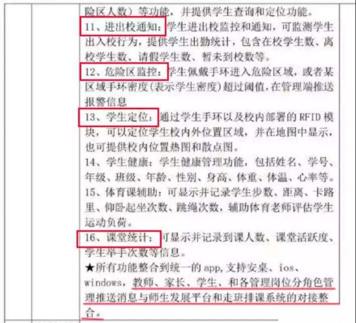 有网友解释,之前自己工作的学校也招标过类似的系统,不用太担心,因为“厂家介绍说其实也就是考勤系统而已,定位也是主要防学生走丢“。