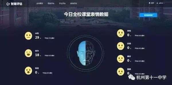 去年5月份,杭州十一中学在校园安装了“智慧课堂行为管理系统”,通过安装在黑板上方的三枚摄像头每30秒钟扫描一次学生,针对学生们的动作(阅读、举手、书写、起立、听讲、趴桌子)结合面部表情(高兴、伤心、愤怒、反感)进行打分,分析出学生们在课堂上的状态。