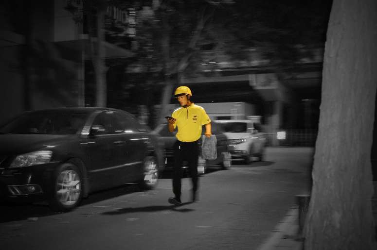 深夜里的馋嘴人偏爱炸鸡。但是当一个男人从黑了灯的肯德基里钻出,接过一份“叫了个炸鸡”的外卖,骑手仍然感觉一头雾水。还有一个夏夜凌晨,一个外卖小哥从一个超市驮了四个十斤重的西瓜,骑行八公里,爬了四层楼,帮一个男士安抚住吵闹的女友。无数个类似的黑夜,负重的电动车在街市穿梭,夜骑手运送过四桶4.5升的水,三大箱啤酒和六卷卫生纸,配送费都只有五块。