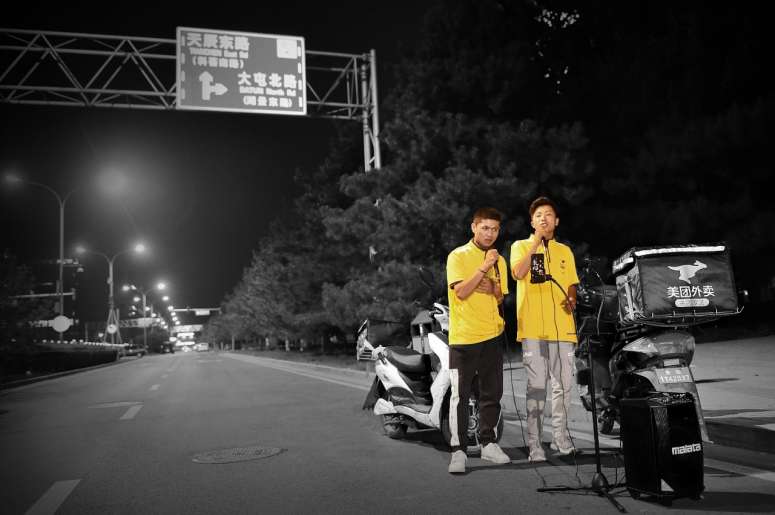 但到了北京,他交不到什么朋友。这个城市节奏太快了,连在工间录视频唱歌直播的骑手都找不到几个。