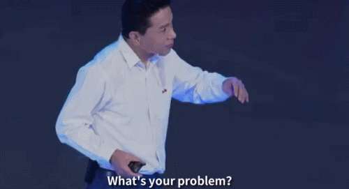 李彦宏现场非常淡定,全程毫无动作,堪称任人蹂躏,仅喊出一句”What's your problem?“。