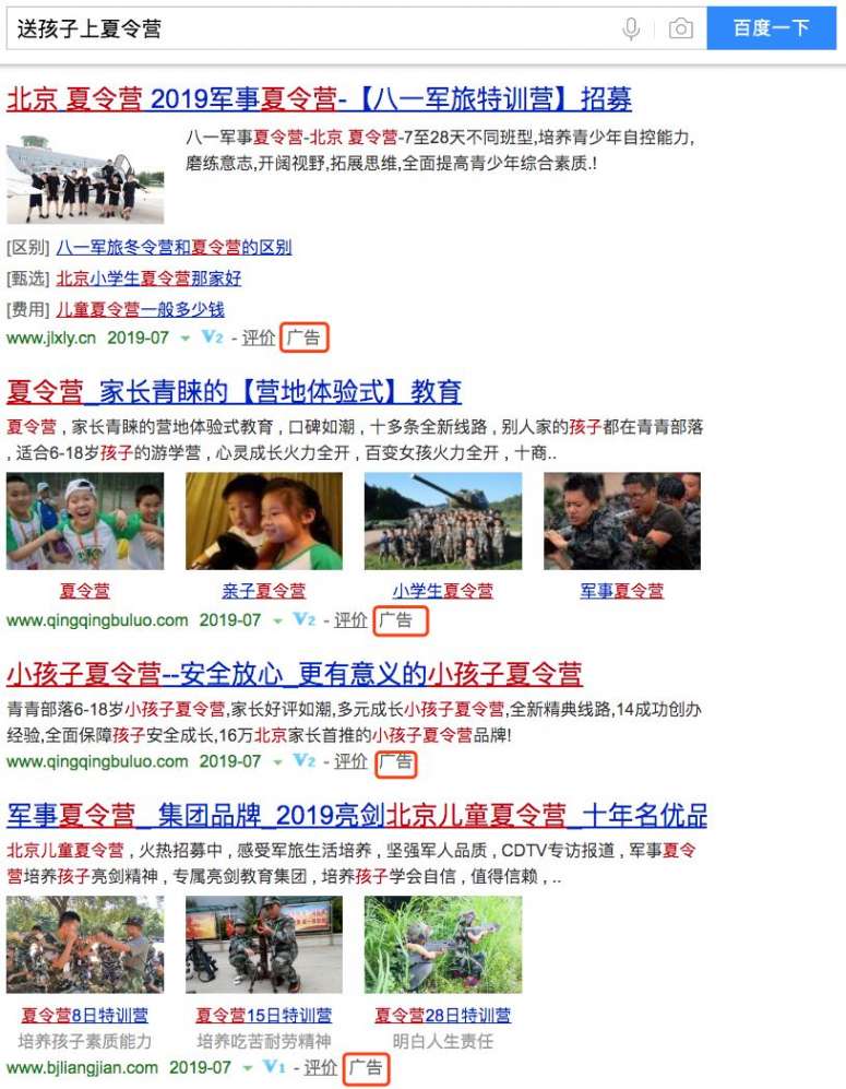 搜索“送孩子上夏令营”,也逃不掉广告的轰炸