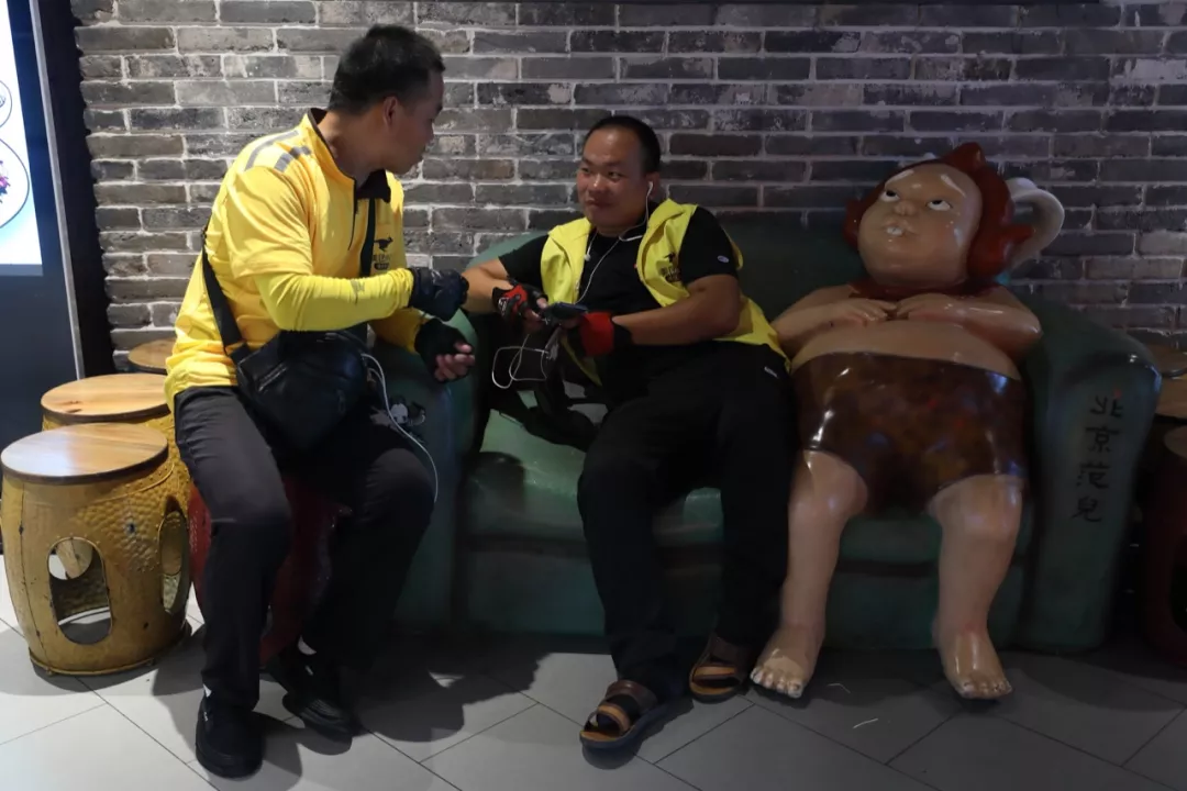 只有去商家取单服务员给脸色时才觉得来气。送单着急,嘴上难免争几句,小店里的服务员置气,下回就故意为难,拖着不给餐,或者骂他们,“你就是一送外卖的”。常包红想不明白,都凭力气干活,咋能分贵贱呢。对他们好的是金鼎轩的大姐,知道男人们吃辛苦,单子排个轻重缓急,催着后厨,把外卖兄弟们都照顾妥帖了。