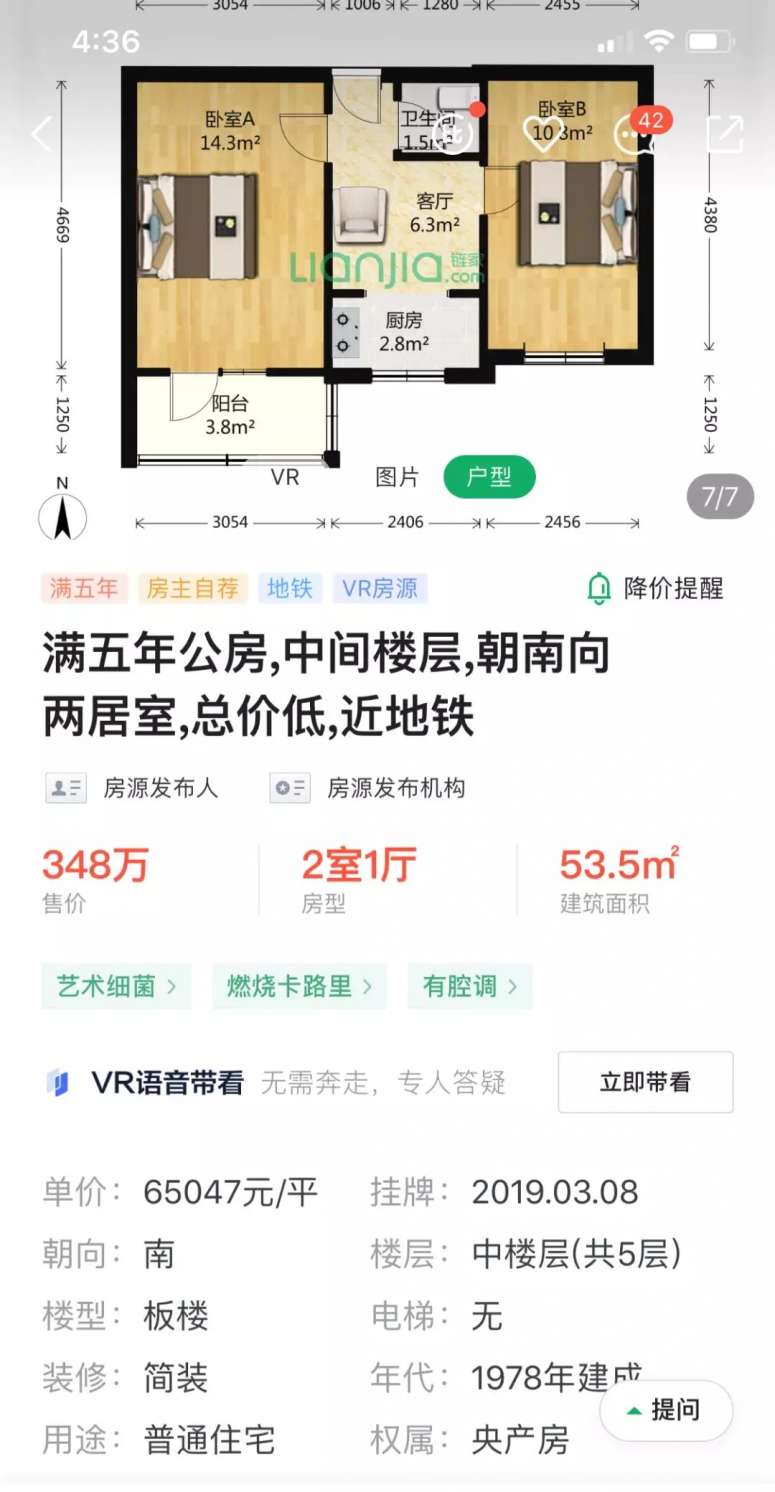这栋楼高六层,生于八十年代,两室一厅全都朝南,并且难得一见地被重新粉刷过,在中介小哥那里十分抢手。