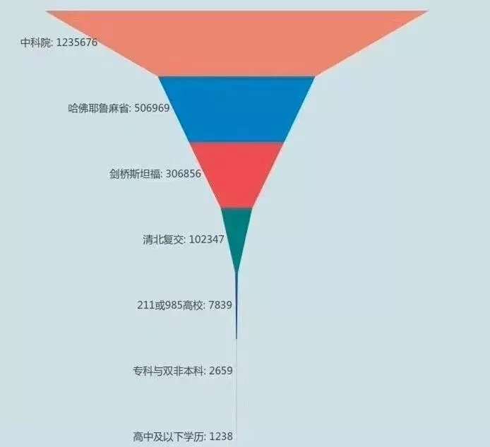 统计后的知乎网友们,50%以上的出身中科院,四分之一来自哈佛耶鲁麻省。五分之一出身剑桥斯坦福。清北复交四大名校出生,还占了二十分之一。