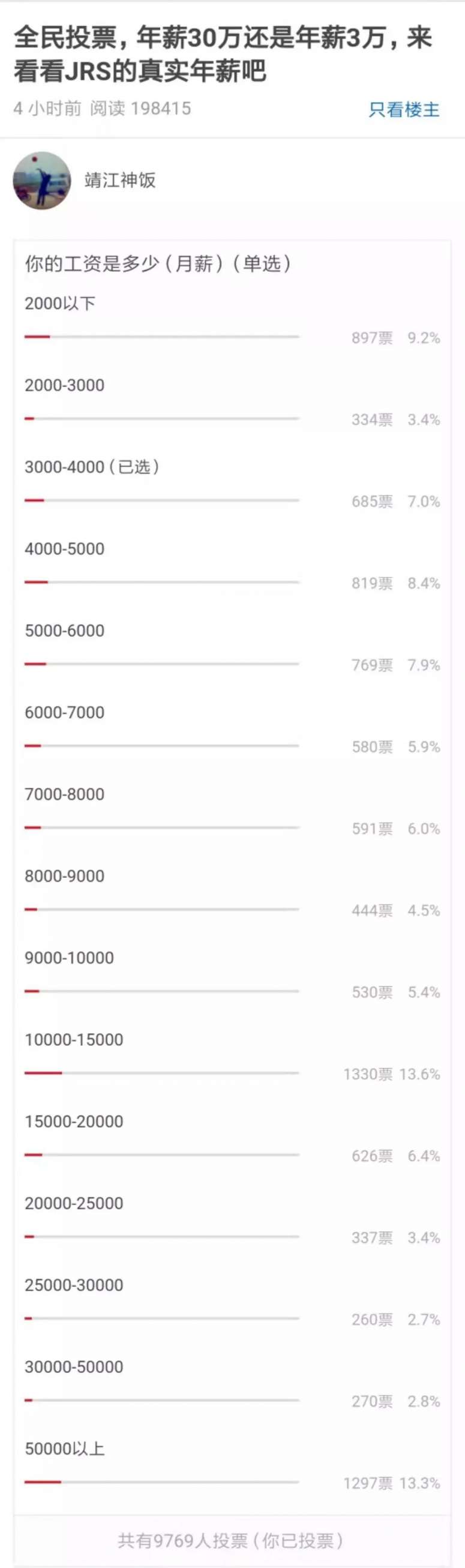 有闲来无(dan)事(teng)的虎扑网友在虎扑步行街上发布了一则投票,问大家各自的月薪,选项从2千到5万不等。