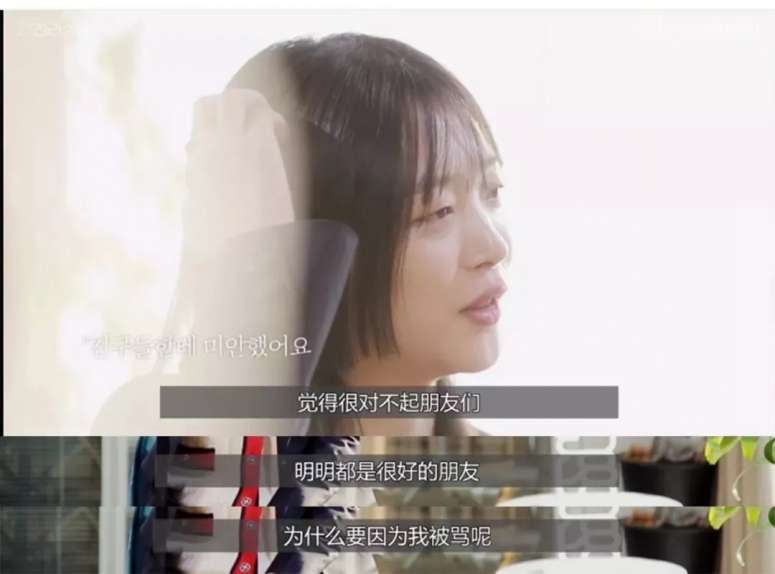她对着镜头,像自己身边的朋友诉说着自己的歉意,“觉得对不起朋友,明明都是很好的朋友,很善良的人,为什么要因为我被骂呢?”