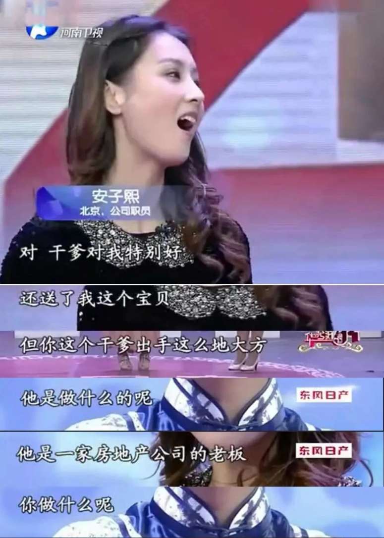 2012年郭美美和干爹的故事引爆全网,节目组也依葫芦画瓢,请来了一位靠干爹吃饭的美女:
