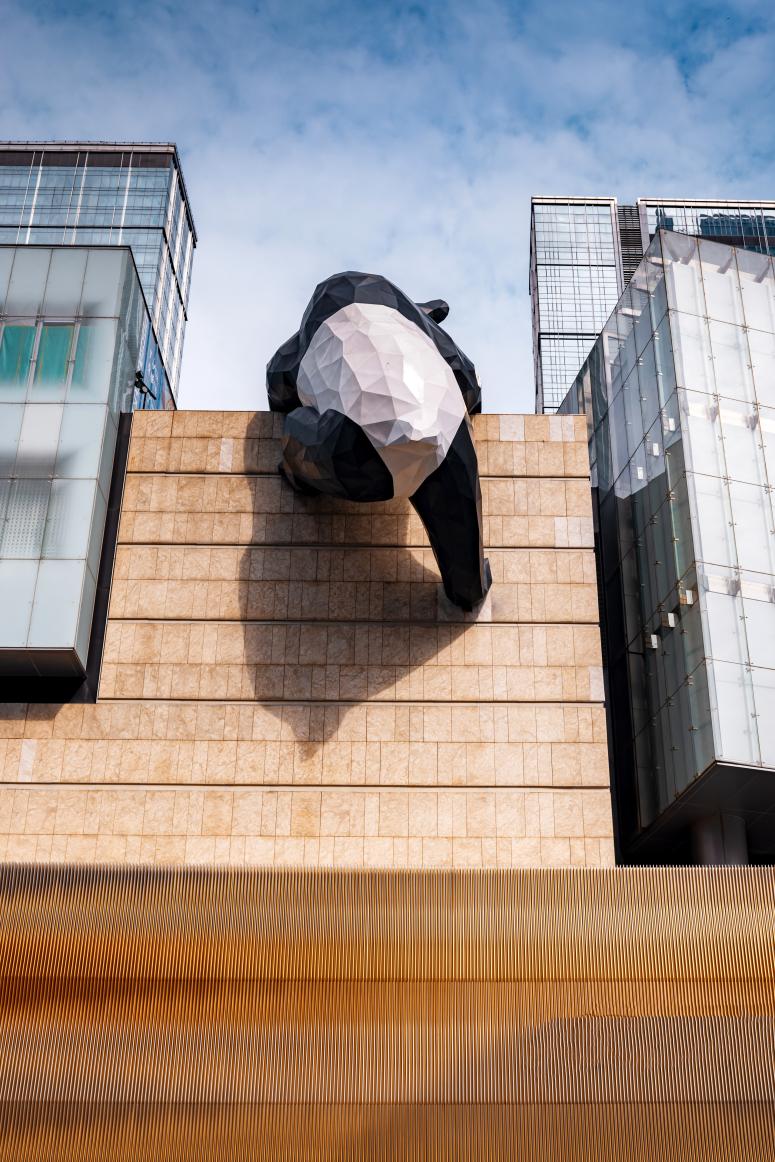 成都IFS的标志性雕塑“大熊猫爬墙”。 成都大运会的倒计时,就悬在香港女孩胡宝琴的心里。她数着日子,抓住学习和科研外“边边角角”的时间,扑在了解成都这座城市的历史底蕴和文化内涵上。 忙碌只为了一件事......
