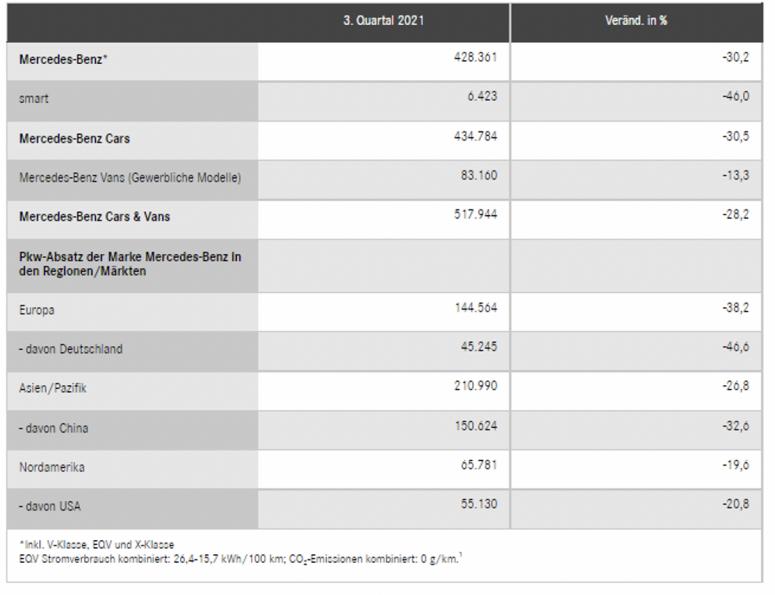 近日,戴姆勒官网公布了梅赛德斯-奔驰汽车2021年第三季度的销售数据。