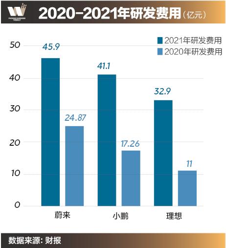 2021年,蔚小理的研发费用涨幅均实现了翻倍增长。