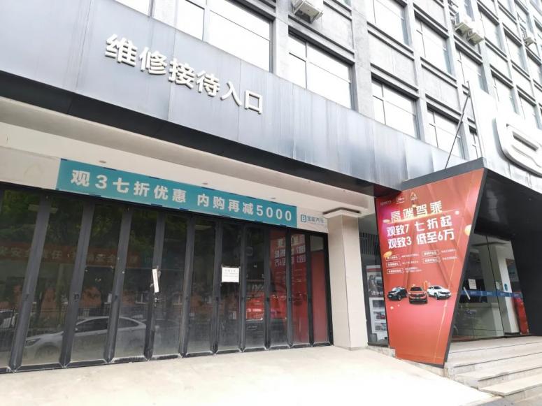 从探访情况来看,位于大兴区的门店玻璃上已积上一层厚厚的灰,那张“高端驾乘:观致7七折起,观致3低至6万”的红色宣传海报还挂在门口。