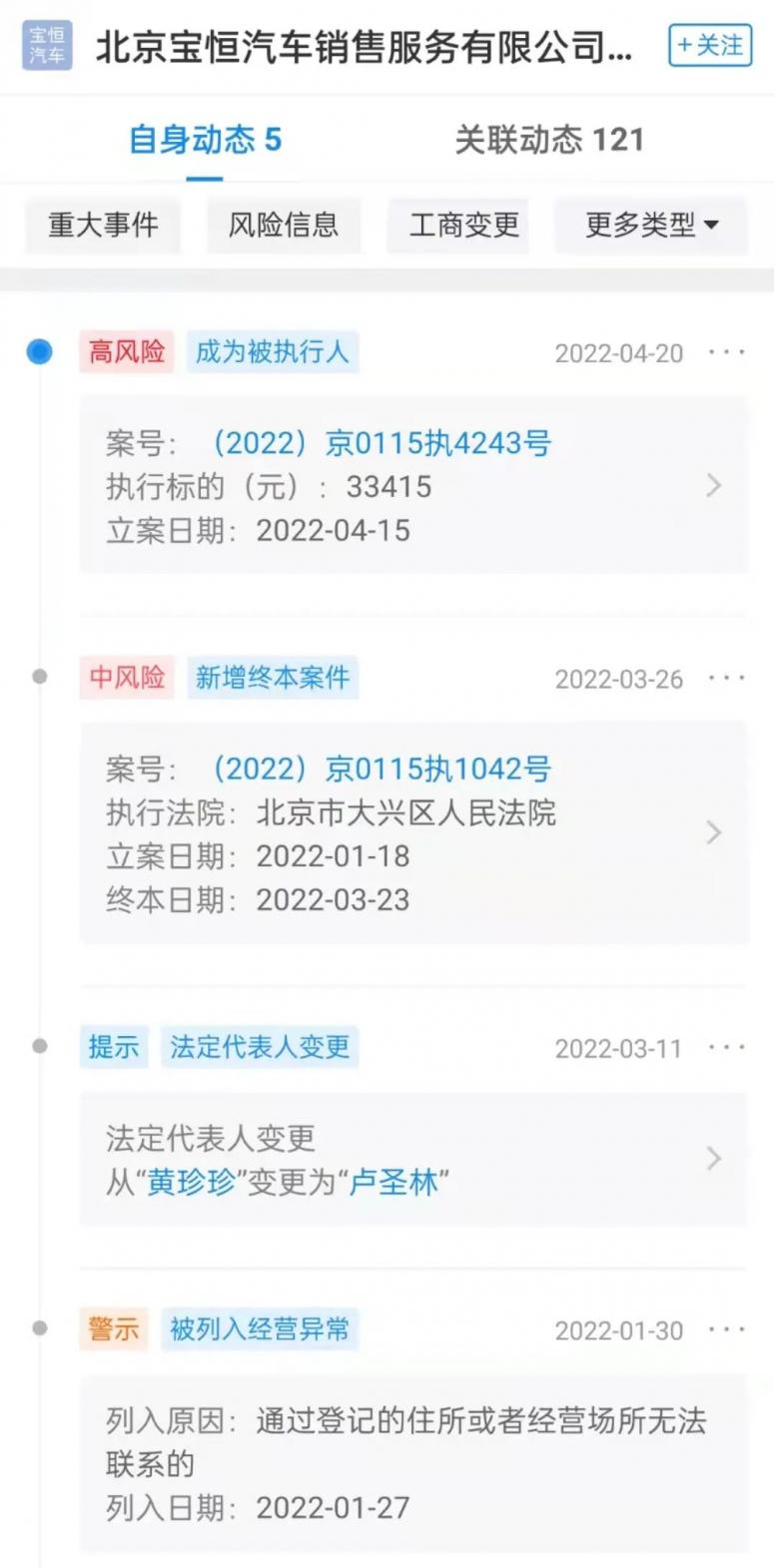 4月15日,该公司被北京市大兴区人民法院列为被执行人。