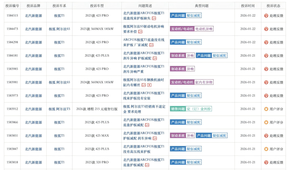 然而随着交付量增加,新车逐渐开始在车质网、黑猫投诉甚至极狐官方APP等多个平台遭遇车主投诉,反馈车辆没有配备线束护板,或将产生安全隐患。