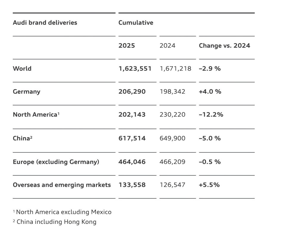 奥迪品牌2025年销量数据(图/官网截图)