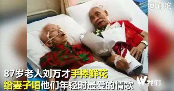 七夕,87岁老爷爷身上插著引流管,怀抱花束,牵着妻子的手,唱起了他们年轻时最爱的情歌。