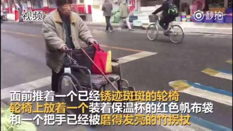 大爷却习惯了每天推着轮椅,仿佛老伴还坐在上面一样。
