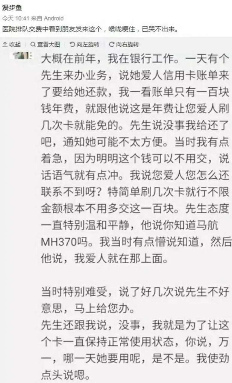 失联家属“漫步鱼”分享了一个关于MH370的故事。