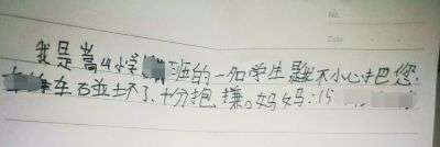 在河南鹤壁,小学生剐蹭汽车后,因为要上学,只能留条致歉,同时还留下了家长的电话联系方式。